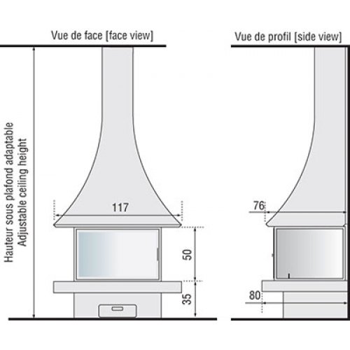 - > Все модели представлены с высоты под потолком в 250 см. Высота регулируется в соответствии с вашими требованиями, дымоходов и скатов крыши.