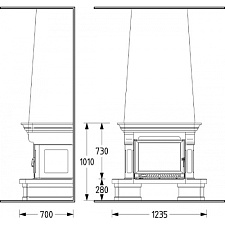 Специальный камин для больших помещений. Двойной кожух, различные варианты основания и система регулировки горения делают его одним из лучших.