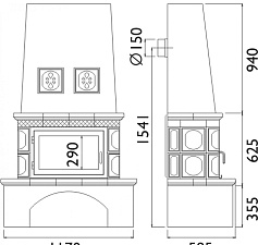 Печь Marina K без труда обогревает большое пространство, благодаря системе длительного горения не потребуется большой расход дров. В режиме тления печь способна работать на одной закладки до 5–6 часов. За это время облицовка накопит тепло и после прогорания дров еще долгое время будет остывать, т.к облицовка изготовлена из печного кафеля, а он обладает сильными накопительными свойствами.