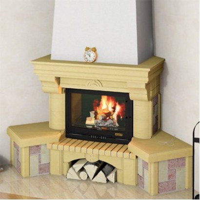 Притопочная часть выложена шамотом песочно-жёлтого цвета.