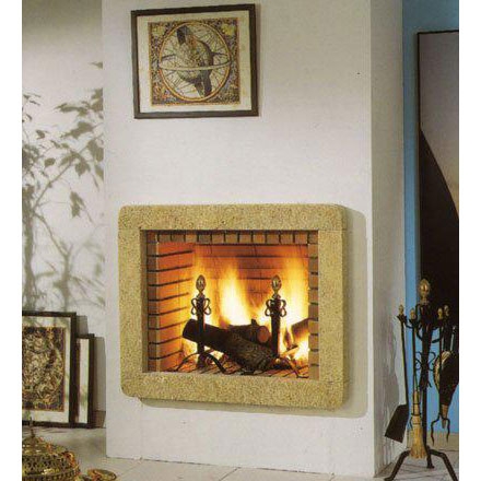 Камин из Гарского камня в виде четырехстороннего обрамления к топке. Топка из кирпича Basic.