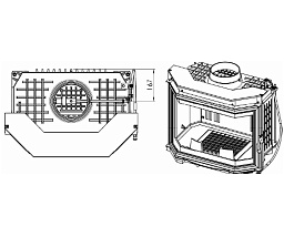 - Три встроенных тепловентилятора для быстрого нагрева, два из которых предназначены для распределения горячего воздуха по отапливаемым помещениям через воздуховоды (т.е. два встроенных патрубка для подключения воздуховодов)