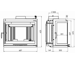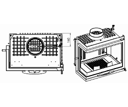Топка изготовлена из стали и окрашена термостойким черным лаком. Внутренняя футеровка из "Thermotte ™ ". Стеклокерамическое окно во время работы топочной камеры омывается горячим воздухом, поэтому остается всегда прозрачным, так как на нем не оседают продукты горения.