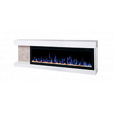 Каминная облицовка выполнена из композита, прекрасно удерживающего тепло, и покрыта краской белого цвета. Корпус имеет необычную геометрию, придающую камину оригинальность.