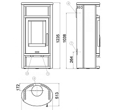 Топка изготовленная из стали с большим стеклокерамическим стеклом, выдерживающим нагрев в 700 градусов. Есть системы двойной дожих и чистое стекло, функция медленного горения. Внизу расположена ниша для хранения дров.