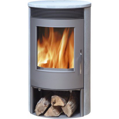 Корпус данной печи цилиндрической формы, поэтому она может стоять в углу или быть просто у стены. В качестве материала изготовления камина использовалась листовая сталь. Облицовка может быть из природного камня талькохлорита либо из песчаника.
