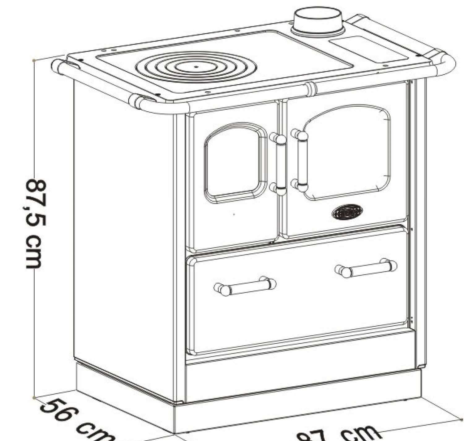 Отопительно-варочная плита с духовкой. Дверца и внутренний обклад топки из чугуна.