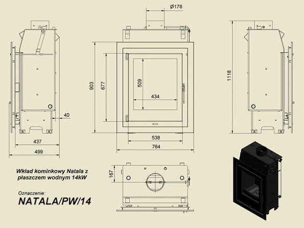 Топка с водяным контуром NATALA/PW/14/GLASS, двойное стекло