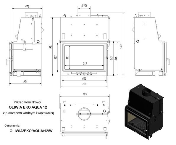 Топка с водяным контуром OLIWIA/EKO/AQUA/12/W, змеевик