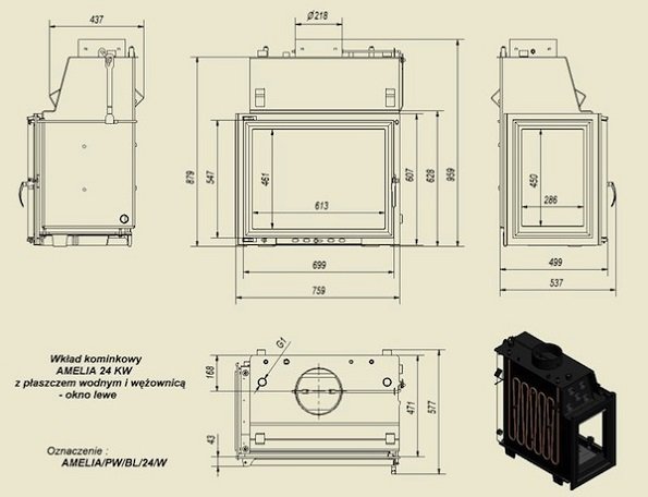 Надежная стальная печь для отопления нескольких комнат. Особенность этой каминной топки - боковое стекло, что дает широких ракурс обзора огня. Встроенная шиберная заслонка дает возможность регулировки воздушной тяги.