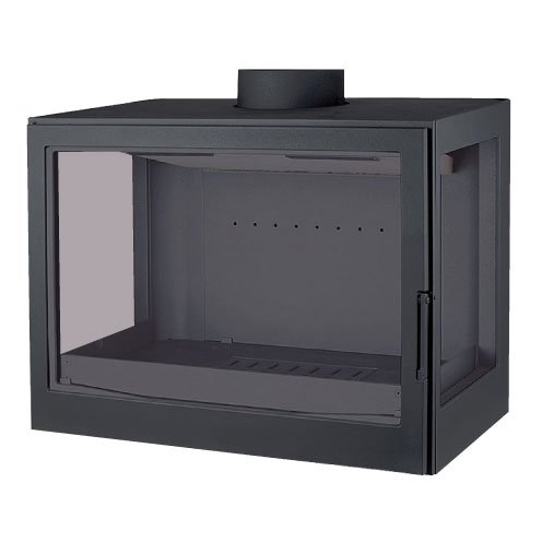 Каминная топка без дымосборника. С правым и левым боковыми стеклами. Цвет - черный.