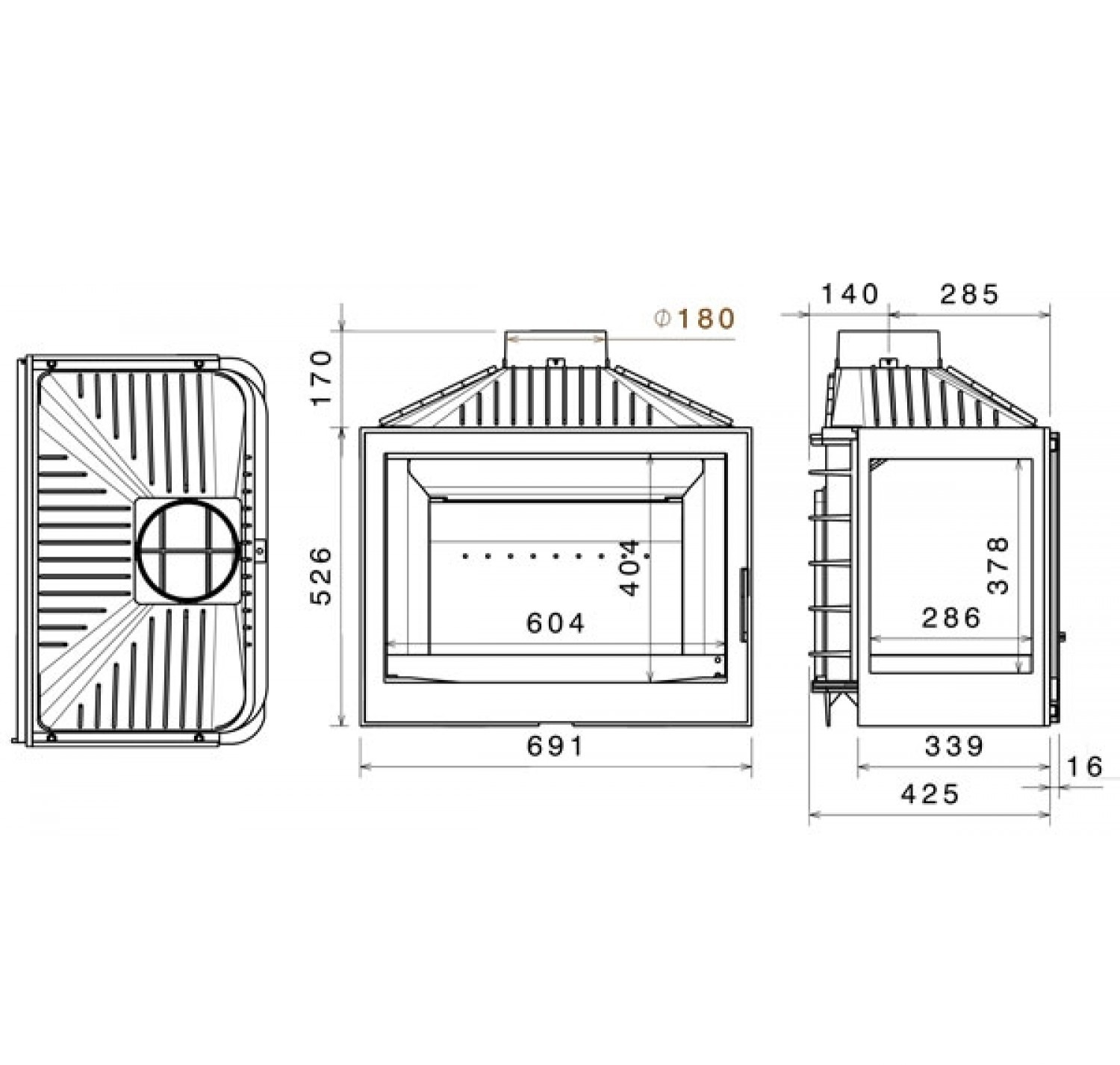 • Диаметр дымохода, (мм)