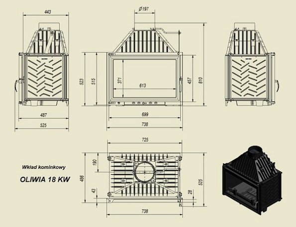 Данная топка оснащена двойным стеклом и зольником - системой отверстий в дне топки, для удаления пепла. Дизайнеры польской компании Kratki дают нам возможность выбрать дизайн дверцы самостоятельно. Есть несколько вариантов: латунь, латунь антик, хром. Для удобства монтажа есть подиум для камина.