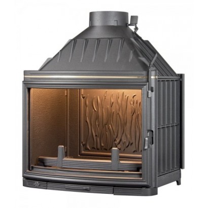 Толщина стенки топки от 8 мм до 12 мм обеспечивает более длительный и безопасный период эксплуатации топки. Заслонка, установленная на уровне вентиляционной трубы приемной камеры, позволяет избежать потерь тепла в дымоходе. За счет толстостенного и качественного чугуна, а также оптимального расположения конвекторов с большой площадью теплоотдачи холодный воздух помещения очень быстро нагревается и способна обогреть помещения размером до 350 квадратных метров.