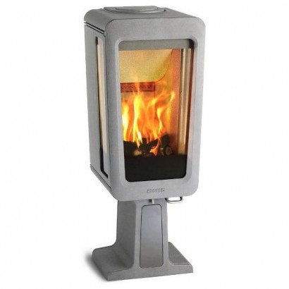 Печь-камин Keddy K-815 серого цвета, изготовлена из чугуна. Большое центральное и 2 боковых стекла.