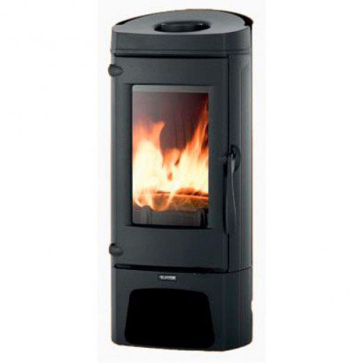 Печь дровяная черного цвета, изготовлена полностью из чугуна.