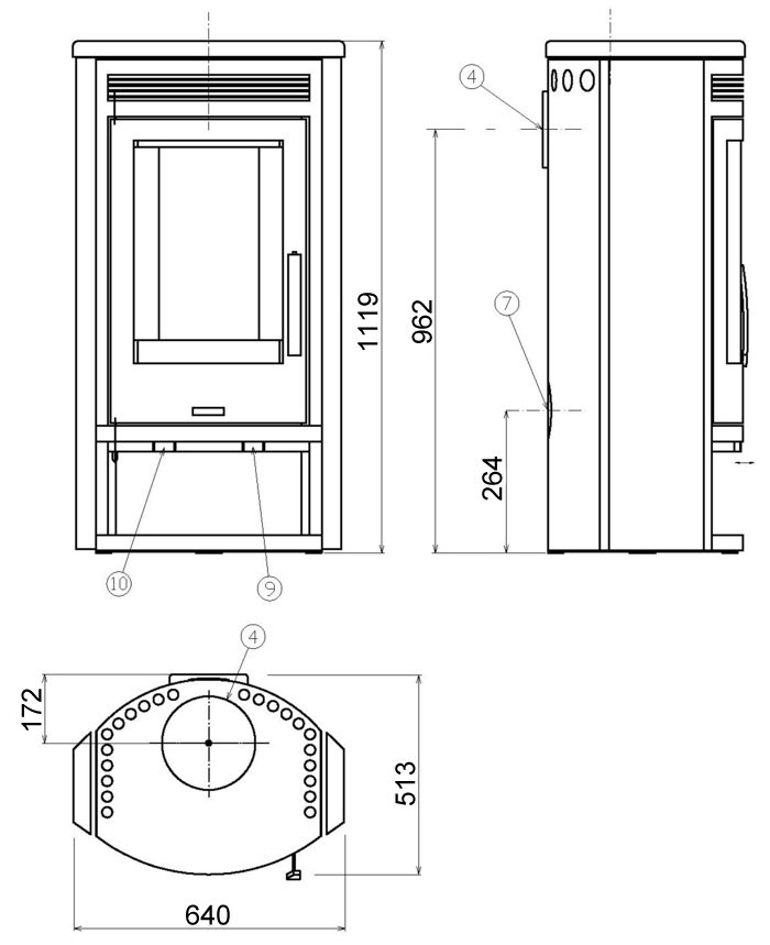 - Опции вторичный дожиг, дровник, система чистое стекло, подача воздуха извне