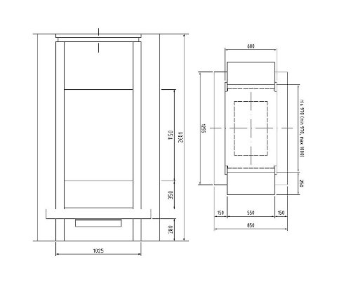 Цена указана за камин в стандартном исполнении (см. чертеж).