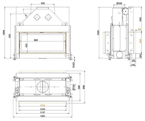 Топка AK Tunnel 45/101 с подъёмом с одним прямым стеклом