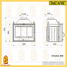 Brunner eck-kamin 42/42/42 side-opening, стальной вертикальный дымосборник, декоративная рама черная