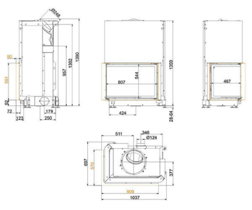 Топка Eck-K 57/82/48 L с подъмом, с одним стеклом