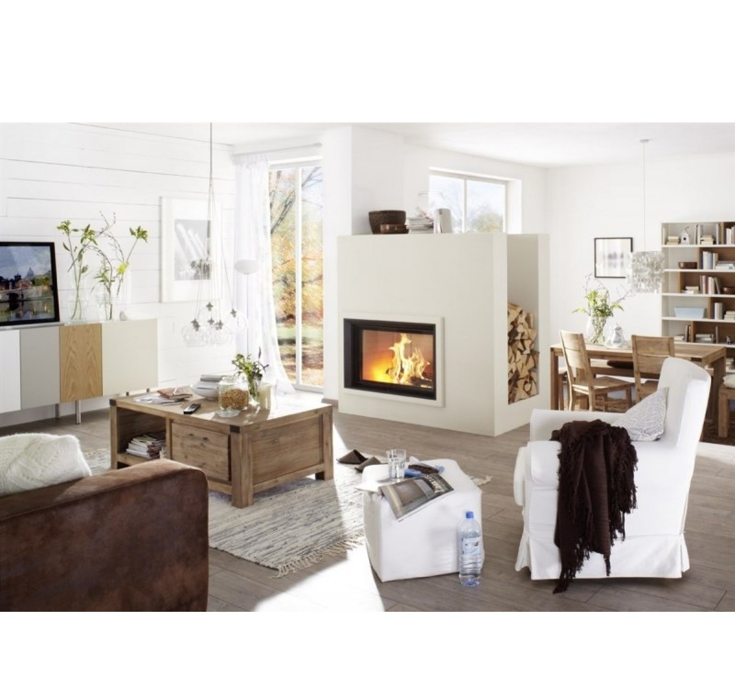 - установка дровяного камина довольно сложна и занимает много времени сама по себе, не говоря уже о попытке вписать такой камин в готовый интерьер; - устройству дымохода следует уделить особое внимание, так как при ошибках в конструкции камин может начать дымить внутрь помещения; - необходимость установки дымохода сильно усложняет процесс размещения камина в городской квартире, особенно, если квартира располагается не на последнем этаже; - необходимо заранее продумать, где будут храниться дрова; - нужно помнить, что при использовании для топки дров потребуется постоянная чистка дымохода от золы;