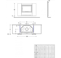 Топка на фото - DESIGN D1000 VAD. Ссылки на подходящие к данному камину топки указаны справа под техническими характеристиками. Возможна адаптация под топки любых размеров.