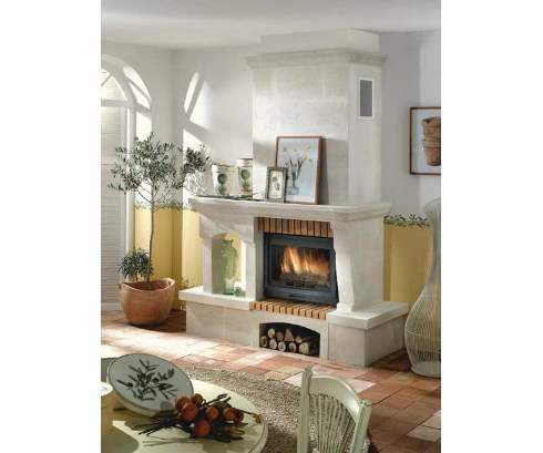Топка на фото - D70. Ссылки на подходящие к данному камину топки указаны справа под техническими характеристиками.