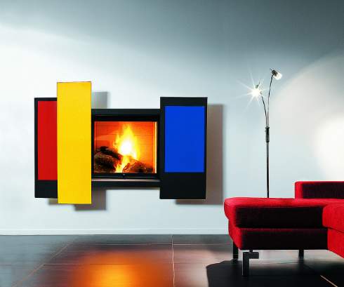 Две стальные дверцы фасада раздвигаются вручную. Цвета фасада нельзя изменить. Дверца из пирокерамического стекла открывается сбоку телескопически. Топка выложена внутри огнеупорным кирпичом. Верхние и нижние вентиляторы обязательны.