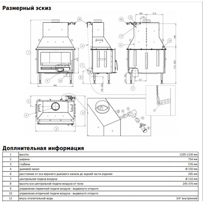 Каминная топка ABX Oxford 10 с теплообменником – предназначена для отопления дома оборудованного системой центрального отопления, работает данная топка на сухих дровах лиственных пород дерева или брикетах. Топка имеет первичную и вторичную регулировку подачи воздуха. Топка оборудована системой вторичного дожига и чистое стекло. Уменьшая приток воздуха, можно перевести печь в режим длительного горения увеличивая время горения дров.