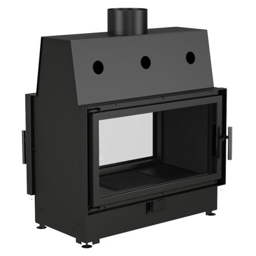 Дровяная каминная топка Echa-Tech Double 90x51/C (туннель, футеровка чугун) - это стальная конструкция, камера сгорания в которой усилена пластинами из чугуна, чтобы не допустить деформации металла от воздействия высокой температуры. Особенностью данной топки является тоннельное остекление и возможность установки, например, в стене между комнатами.