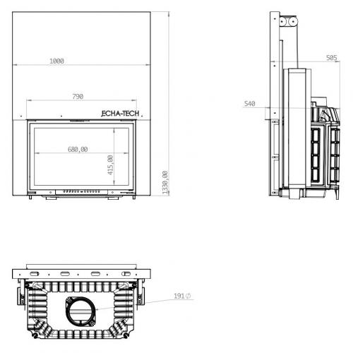 Дровяная каминная топка Echa-Tech Font/800/G (гильотина) оснащена подъемным механизмом открывания дверцы, что удобно при встраивании в высокий портал. Материалом изготовления печи является чугун, футеровка топки выполнена также чугунными пластинами, которые не дают корпусу деформироваться при воздействии высоких температур.