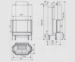 Классическая каминная топка тройного остекления W4 DUAL 14,5 кВт с дополнительным правым и левым стеклом для наслаждения игрой живого укрощенного огня с нескольких сторон, используется для отопления помещений как качественный дизайнерский отопительный прибор, а также как предмет интерьера. Жаростойкая плита в задней части топки декорирована гербом со львом.