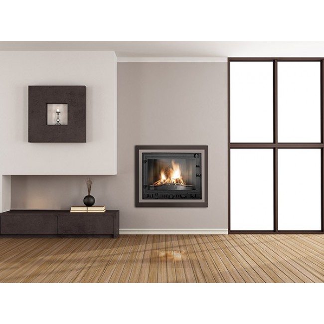 В дополнение на рамке топки устроены регулируемые конвекционные отверстия. Благодаря этим отверстиям воздух постоянно проникает в короб камина и конвекция происходит гораздо быстрее.