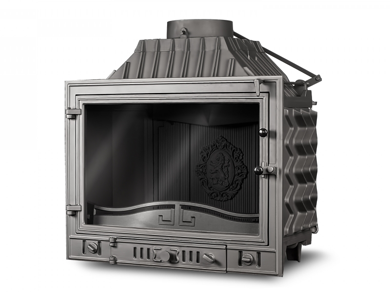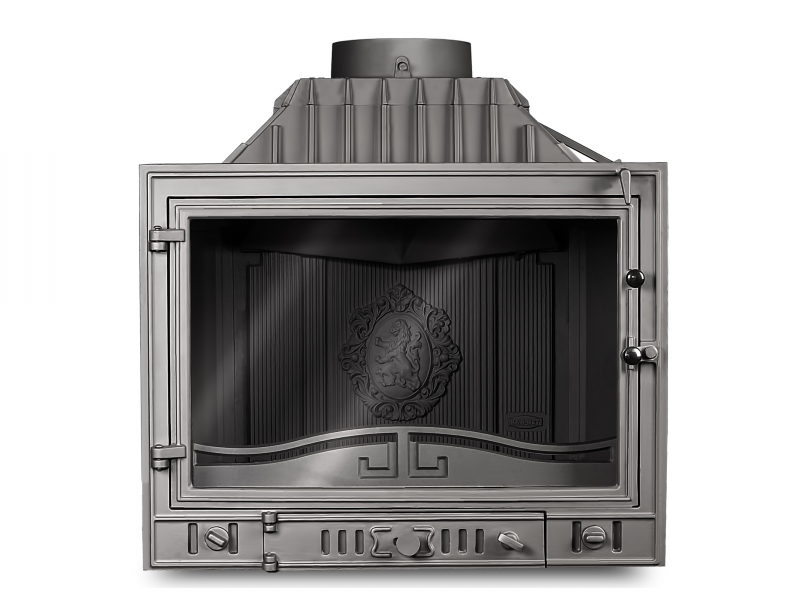 Классическая каминная топка W4 14,5 кВт это аналог топки W3 с уменьшенной мощностью, используется для отопления помещений как качественный дизайнерский отопительный прибор, а также как предмет интерьера. Жаростойкая плита в задней части топки декорирована гербом со львом.