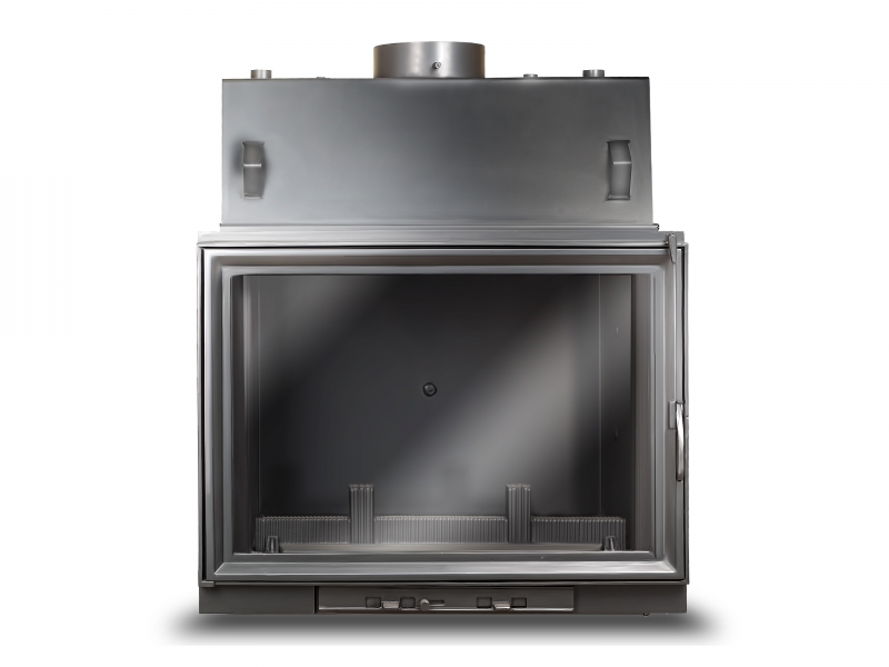Повышенный КПД и теплоотдачу обеспечивает чугунный дефлектор, который расположен над камерой сгорания каминной топки KAWMET. Назначение дефлектора - направить недогоревшие частицы дровяного газа в центральную часть камеры сгорания, где происходит повторное догорание. Также дефлектор увеличивает тепловую эффективность топки путем удлинения пути прохождения продуктов сгорания.