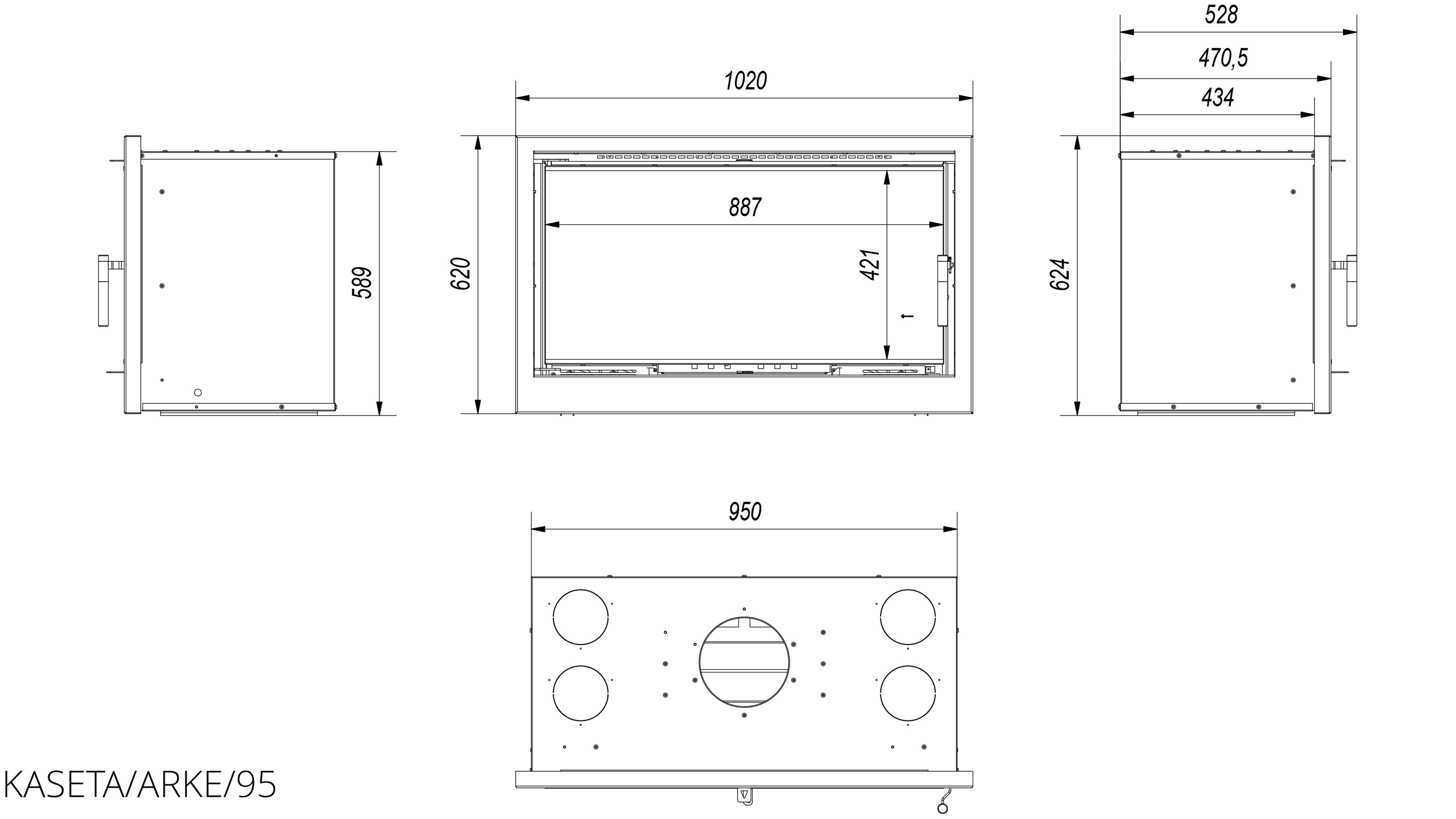 Каминная топка Kratki ARKE/95 (кассета) является разновидностью закрытой камеры сгорания, монтированной на существующие уже открыты камеры сгорания или в индивидуальную застройку. Ее простой и элегантный вид идут в паре с очень хорошими тепловыми параметрами. Она имеет систему чистого стекла, которая вместе с отдельным контейнером и накопленной в нем золой помогает держать устройство в чистоте.