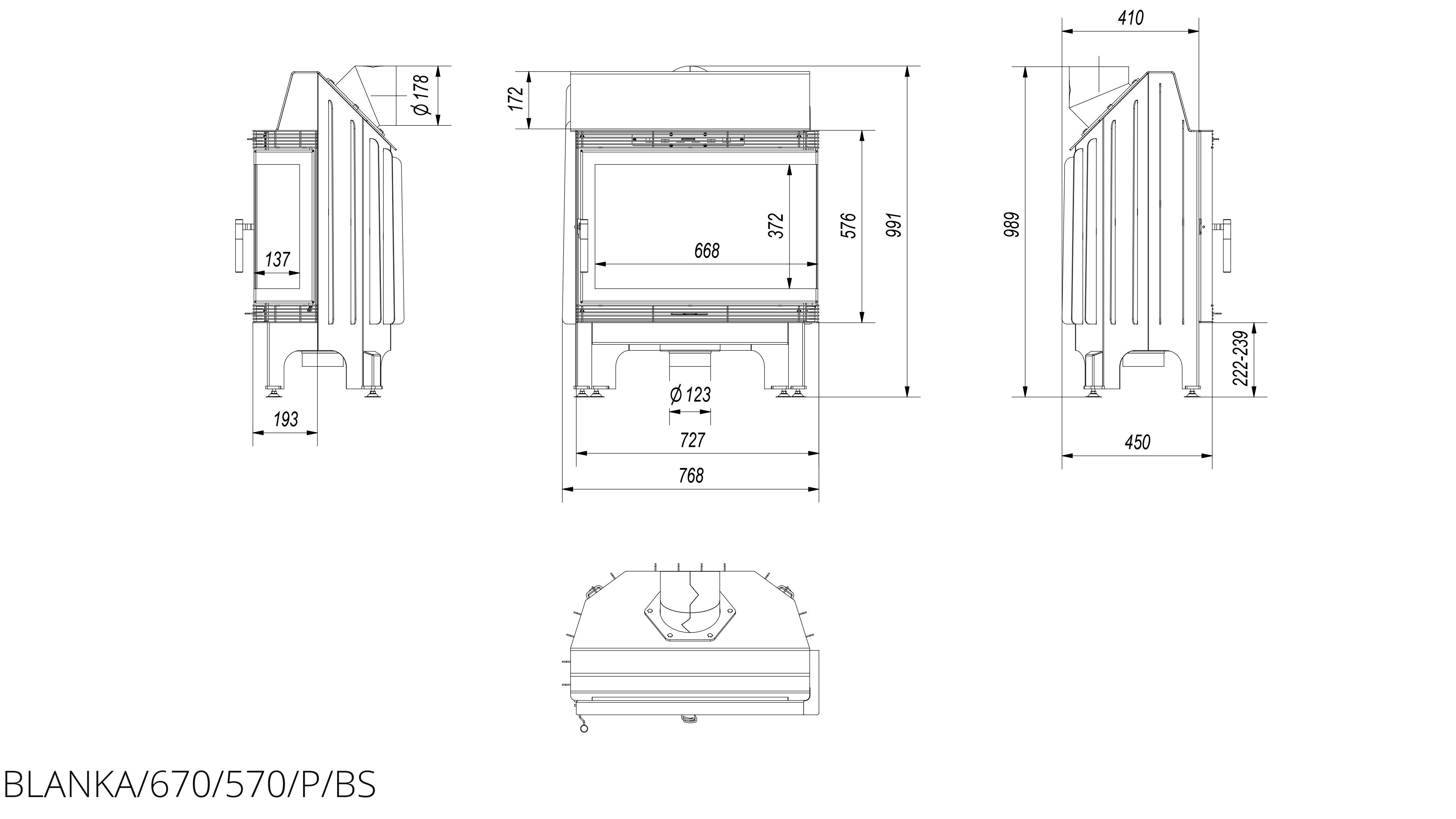 Каминная топка Kratki Blanka/670/570/P/BS