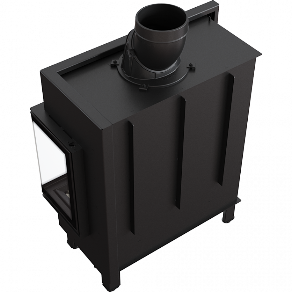 - Модель оснащена подвижным дымоходным отверстием, так что во время монтажа нет необходимости покупать дополнительные колена. Можно легко подобрать угол подключения топки к каминной инсталляции.