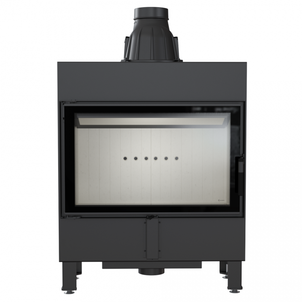 - Кроме того, для топки используется система чистого стекла (воздушная завеса), то есть воздух подается прямо на стекло через систему каналов, расположенных по бокам камина. Таким образом, кислород поступает в верхнюю часть камеры сгорания, где происходит сгорание газов, возникших в процессе сжигания дров, что дополнительно уменьшает выброс вредного СО в атмосферу.