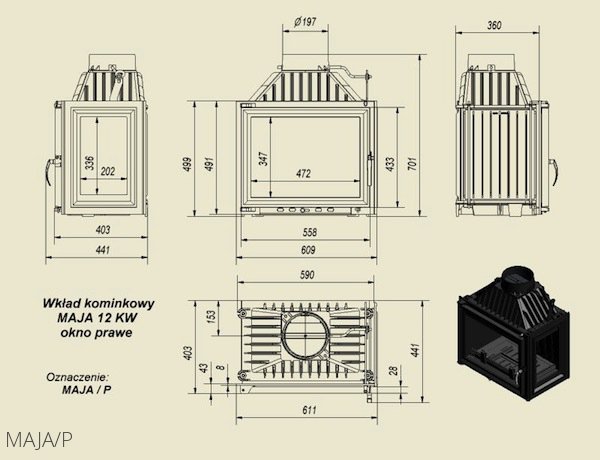 Топка для камина непрерывного сгорания серии Maja/P (стекло справа) – чугунная топка от польских мастеров из компании Kratki. Европейское качество, традиционный материал (чугун), небольшая мощность и привлекательная цена – отличие оборудования Maja.