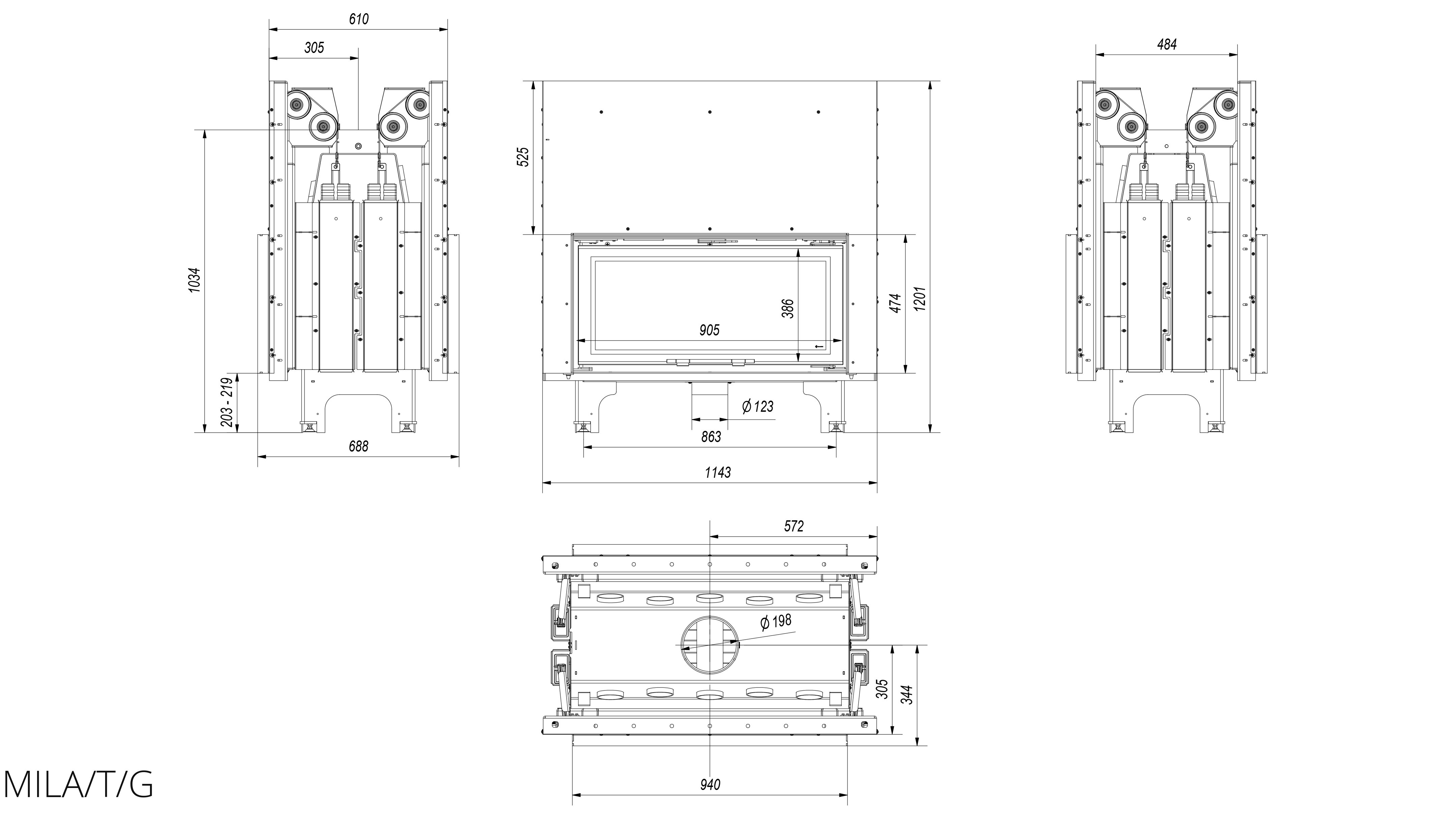 Каминная топка Kratki Mila/T/G (туннельная, 2-х сторонняя гильотина) с современной панорамной передней стороной и большим созерцанием огня. Встраиваемая топочная камера, выполненная из котельной стали. Данная модель топки относится к топкам туннельного типа, когда оба фасада имеют дверцы (со стеклами).