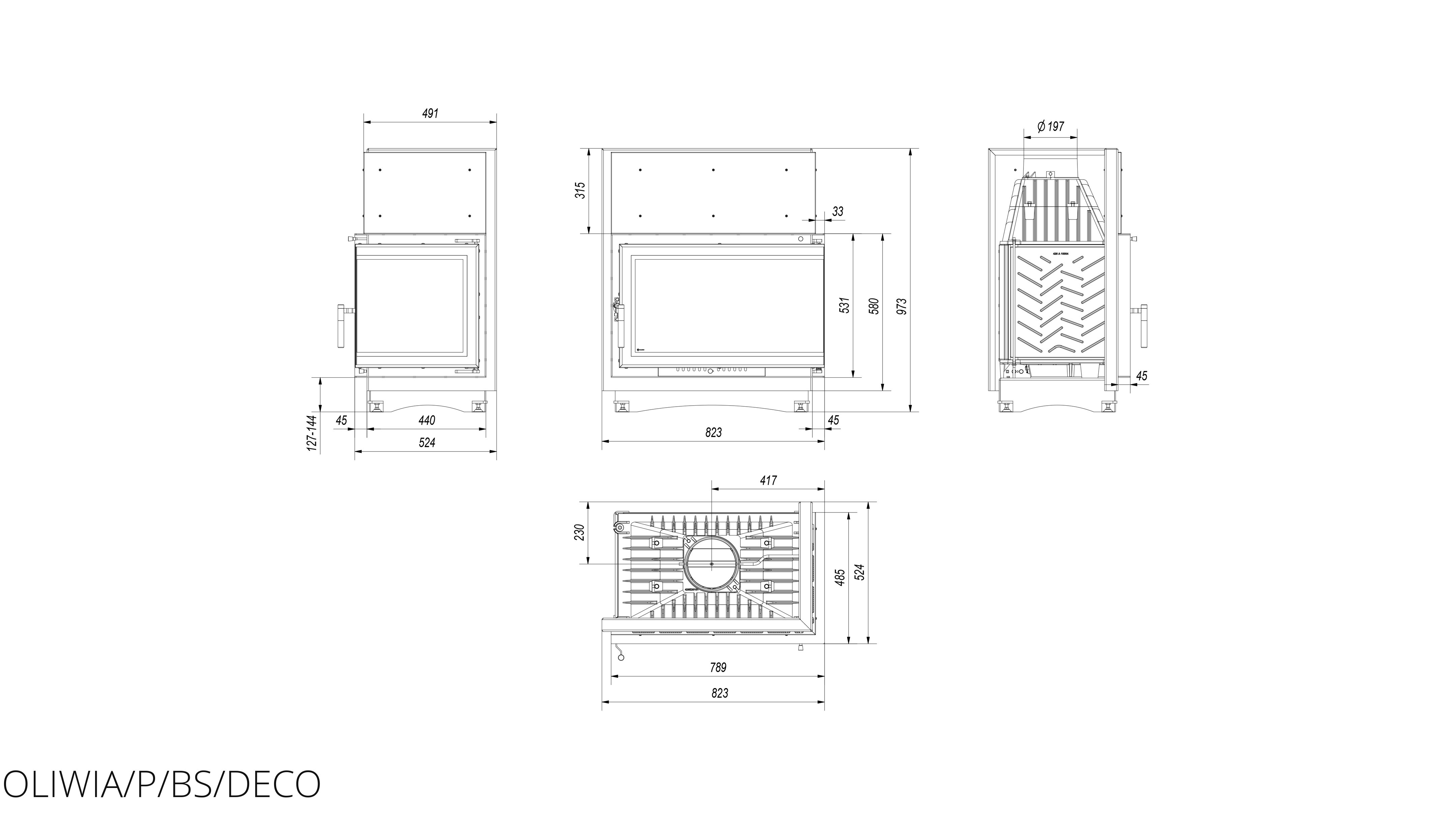 Каминная топка Kratki Oliwia/P/BS/Deco