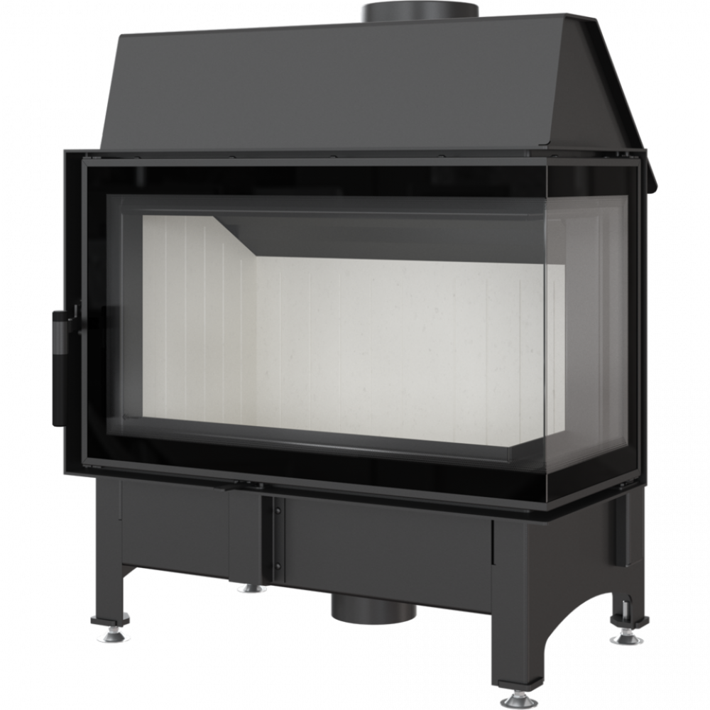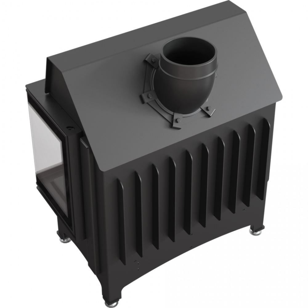 - Модель оснащена подвижным дымоходным отверстием, так что во время монтажа нет необходимости покупать дополнительные колена. Можно легко подобрать угол подключения топки к каминной инсталляции.