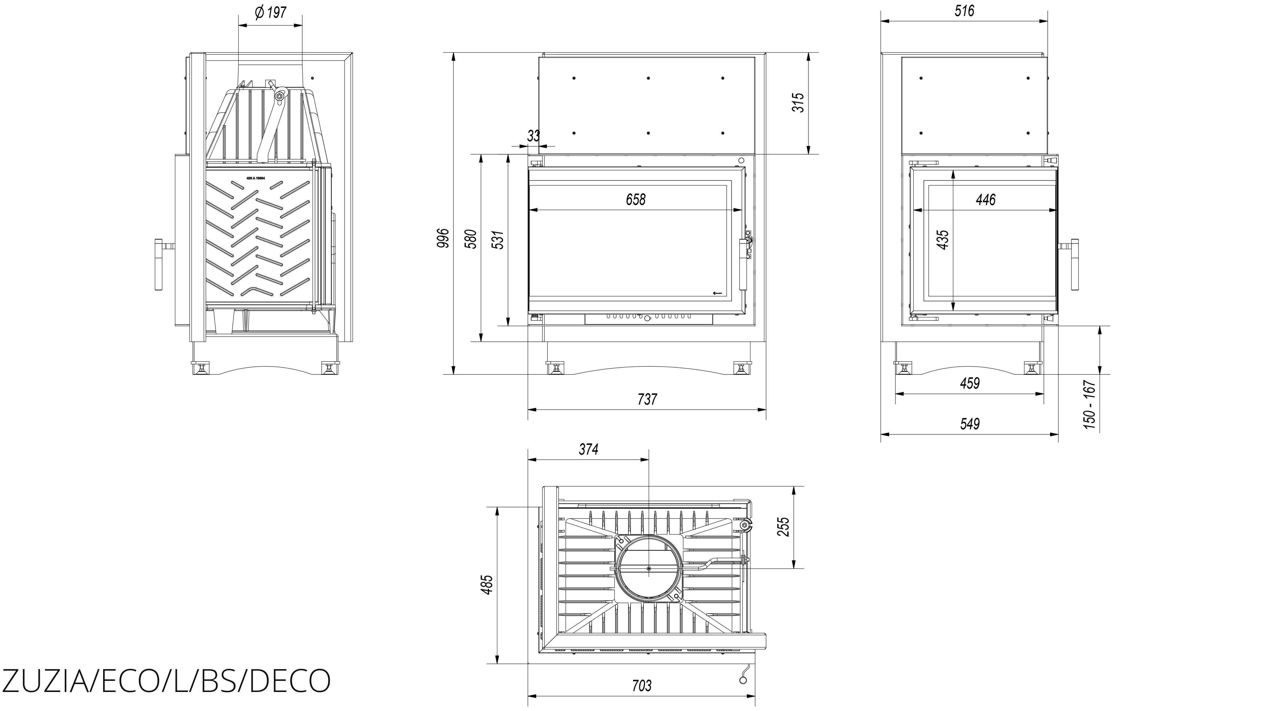 Каминная топка Kratki Zuzia/Eco/L/BS/Deco
