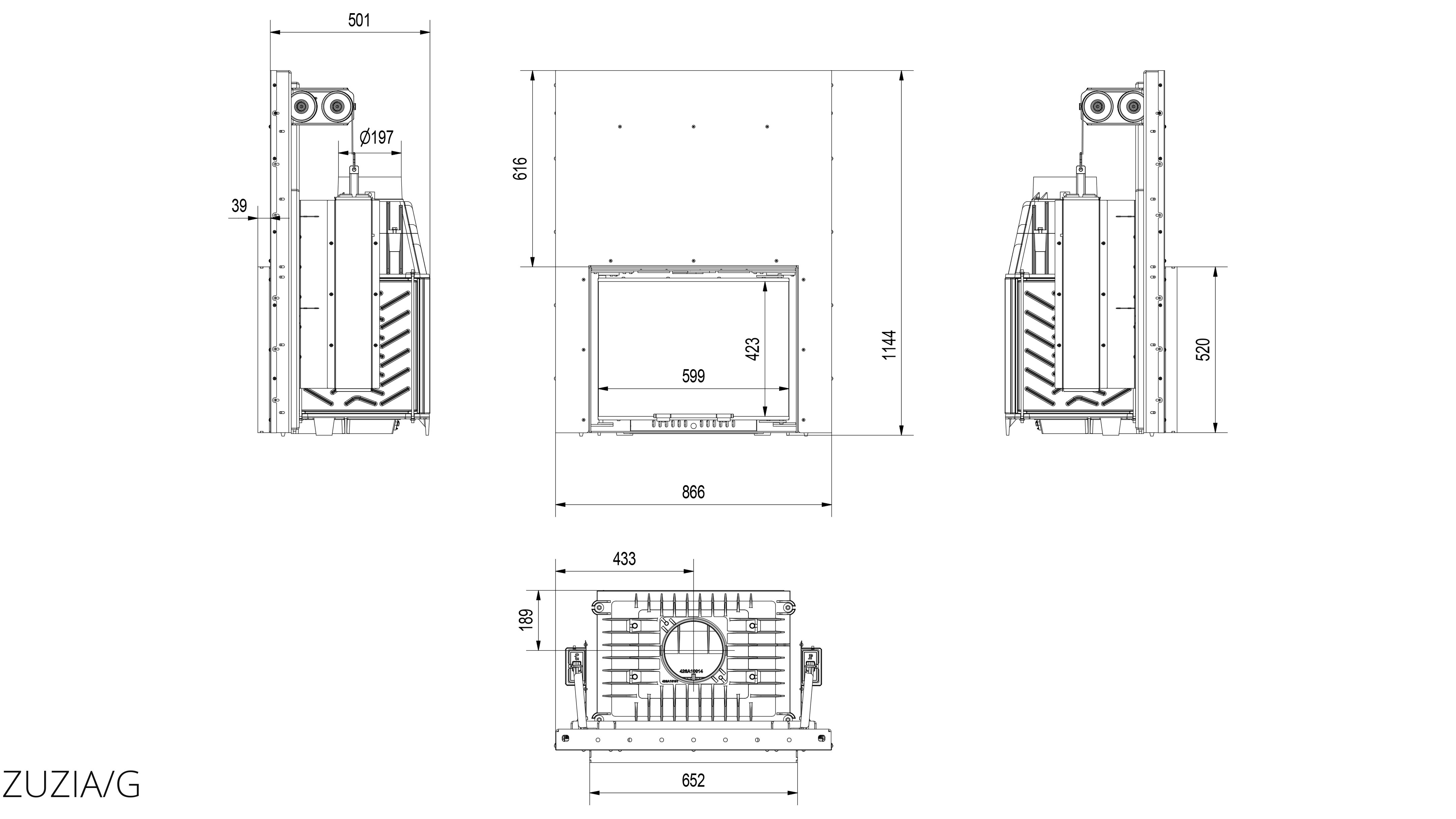 Zuzia/G (имеет гильотинный механизм открытия дверцы) – популярная серия встраиваемых каминных топок польского производителя Kratki. Данная каминная вставка оборудована гильотинным механизмом открытия дверцы. Корпус топки Zuzia/G выполнен из стали, топочная камера – из чугуна. Благодаря такому конструктивному решению топка имеет длительный срок эксплуатации. Топки, как и любое тепловое оборудование, подбираются по мощности, теплопроизводительности представленной модели достаточно для отопления небольшого жилого дома.