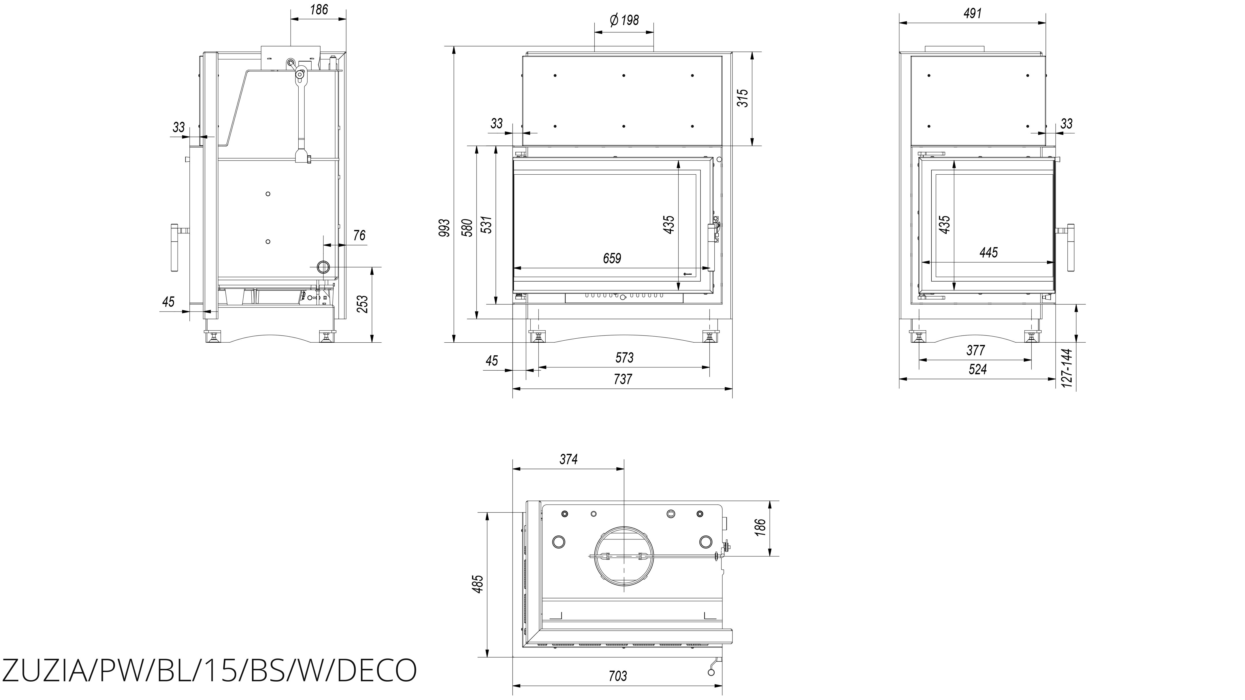 Каминная топка Kratki Zuzia/PW/BL/15/BS/W/Deco