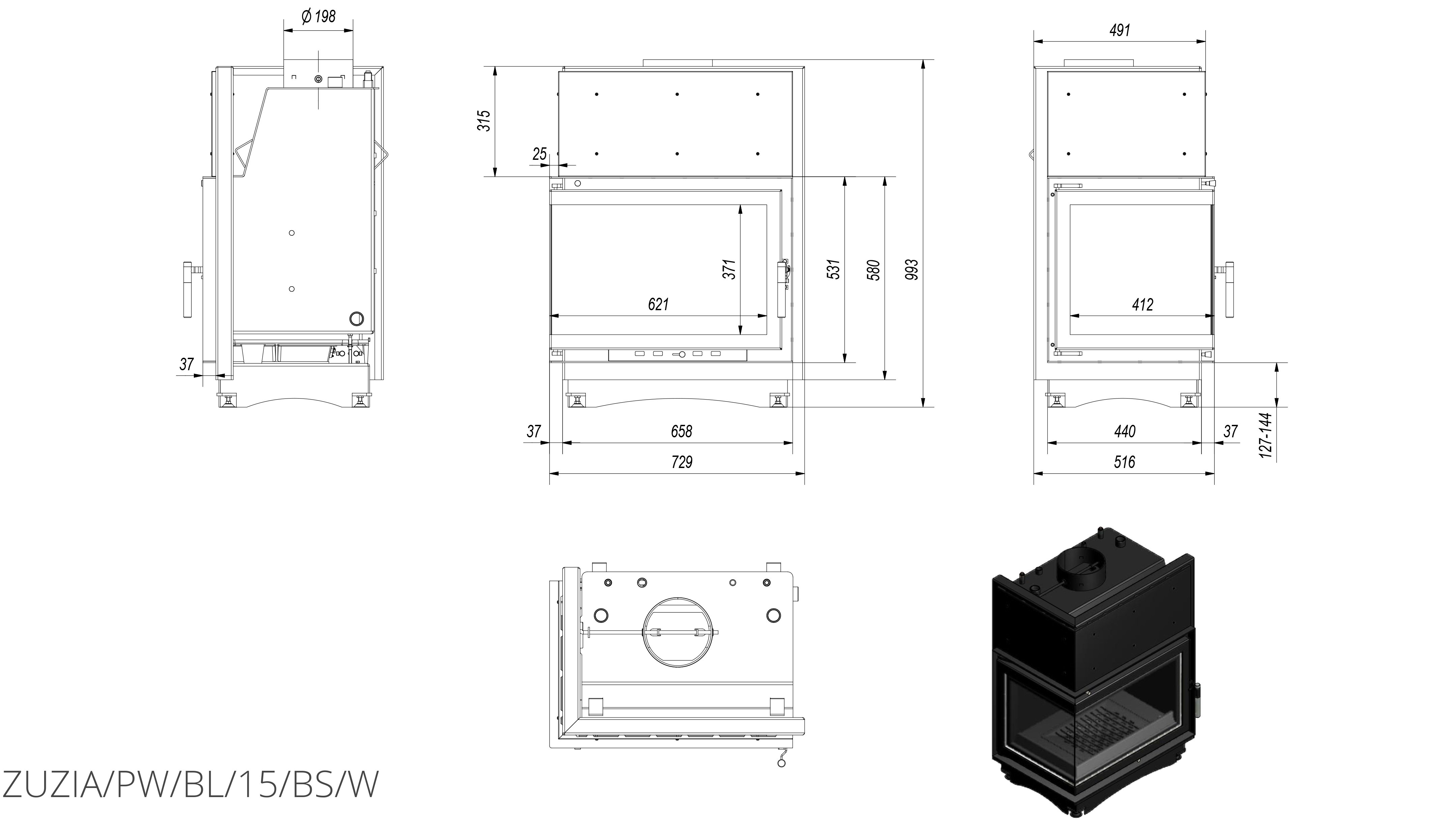 Каминная топка Kratki Zuzia/PW/BL/15/BS/W