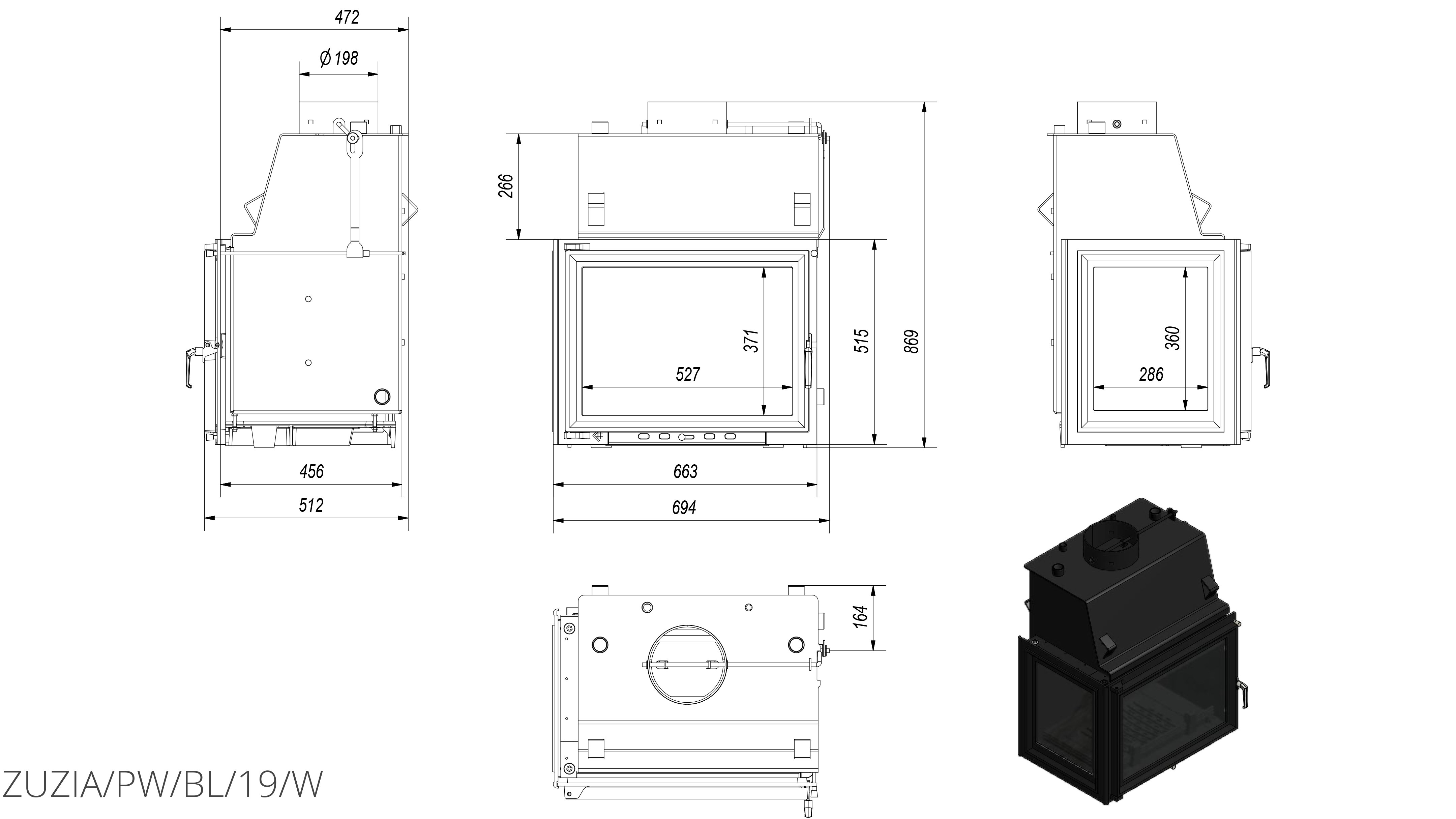 Каминная топка Kratki Zuzia/PW/BL/19/W
