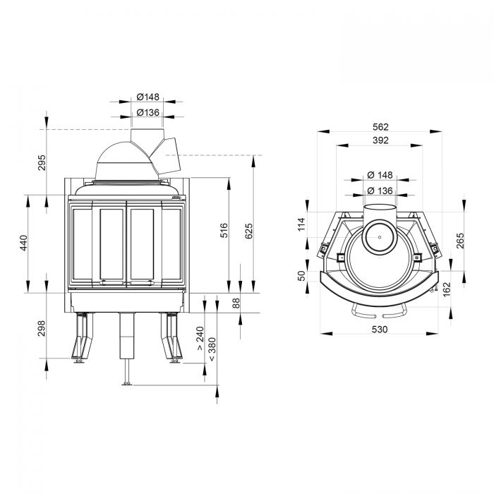 - Диаметр дымохода, (мм) 150